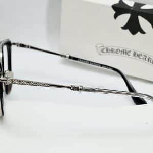 Kính dáng vuông với gọng đen bạc phối hợp tinh xảo, thể hiện đẳng cấp thủ công đặc trưng của Chrome Hearts.